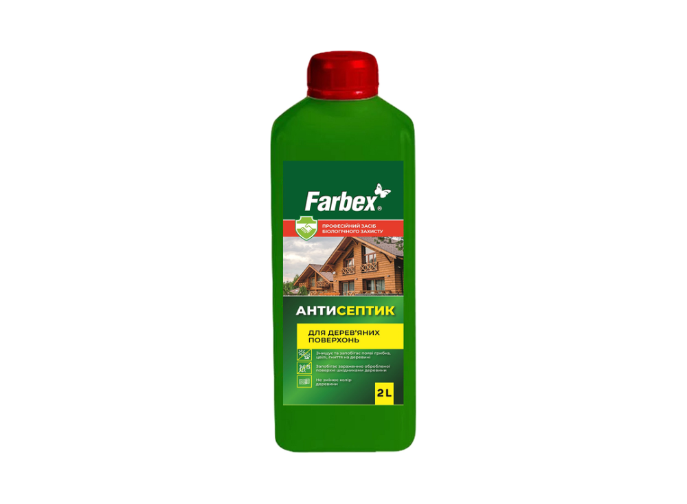 Антисептик Farbex призначений для захисту деревини від грибка, цвілі, гниття та комах-шкідників. Використовується для обробки дерев’яних конструкцій житлових, промислових і сільськогосподарських будівель як перед нанесенням лакофарбових матеріалів, так і без подальшого покриття. Ідеально підходить для зовнішніх і внутрішніх робіт, для нових або вже експлуатованих дерев’яних поверхонь.