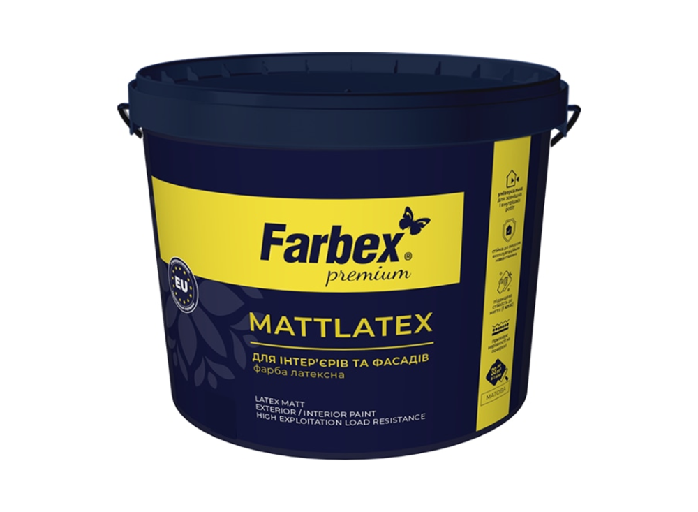 Фарба Farbex Premium поєднує високу міцність, чудову покривну здатність та довговічність, забезпечуючи ідеально матову поверхню, яка зберігає колір і стійкість до миття навіть при щоденному догляді.