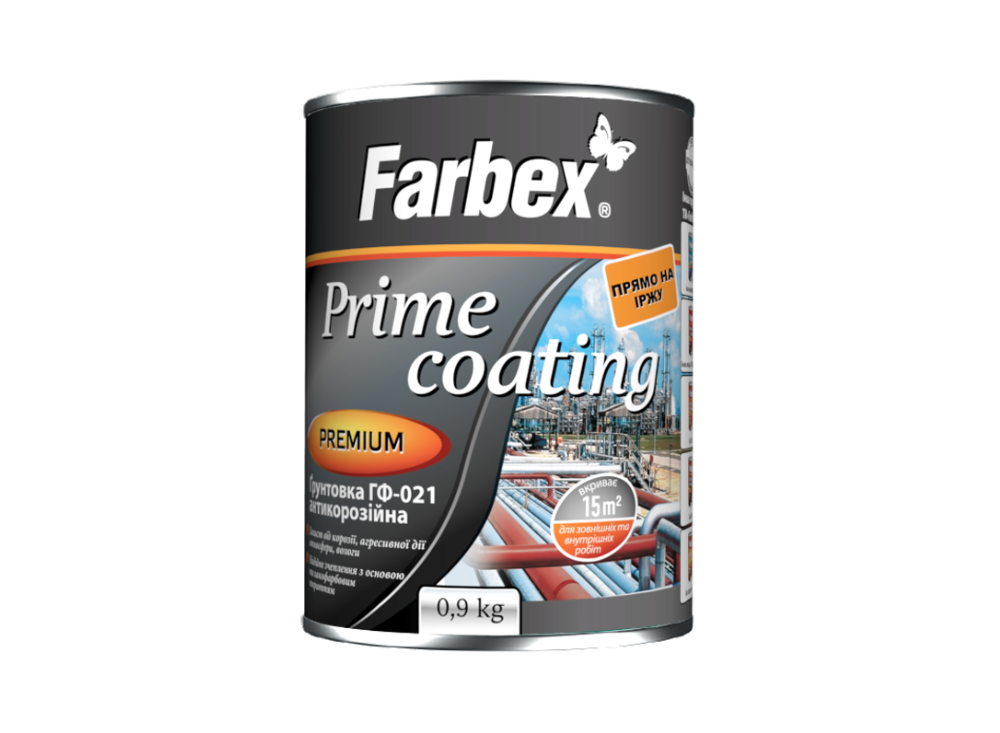 Farbex — це якісна алкідна ґрунтовка, призначена для ефективного захисту чорних металів від корозії. Завдяки підвищеній адгезії вона забезпечує міцне зчеплення як з основою, так і з наступними шарами фарби, утворюючи надійне покриття, що запобігає утворенню іржі. Ґрунтовка може застосовуватись як під шар емалі, так і як самостійне покриття для тимчасового захисту металевих поверхонь у період зберігання або транспортування.