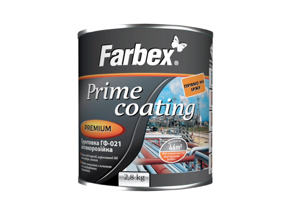 Farbex — це якісна алкідна ґрунтовка, призначена для ефективного захисту чорних металів від корозії. Завдяки підвищеній адгезії вона забезпечує міцне зчеплення як з основою, так і з наступними шарами фарби, утворюючи надійне покриття, що запобігає утворенню іржі. Ґрунтовка може застосовуватись як під шар емалі, так і як самостійне покриття для тимчасового захисту металевих поверхонь у період зберігання або транспортування.
